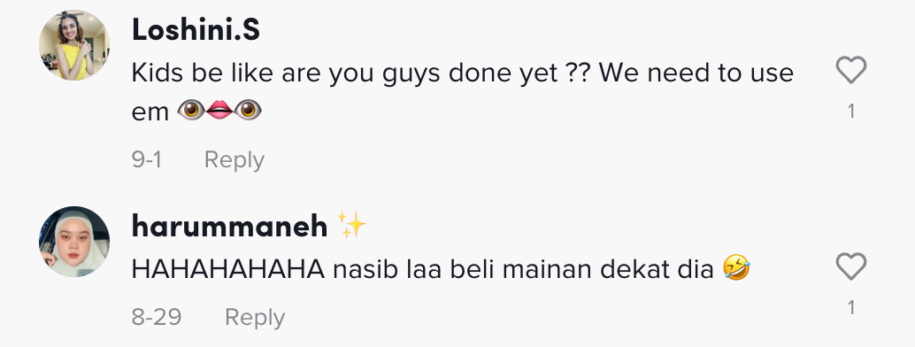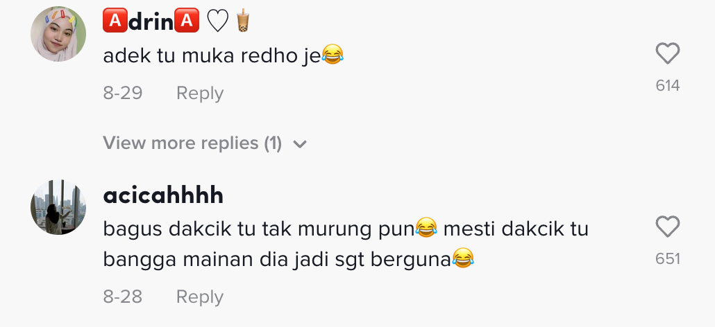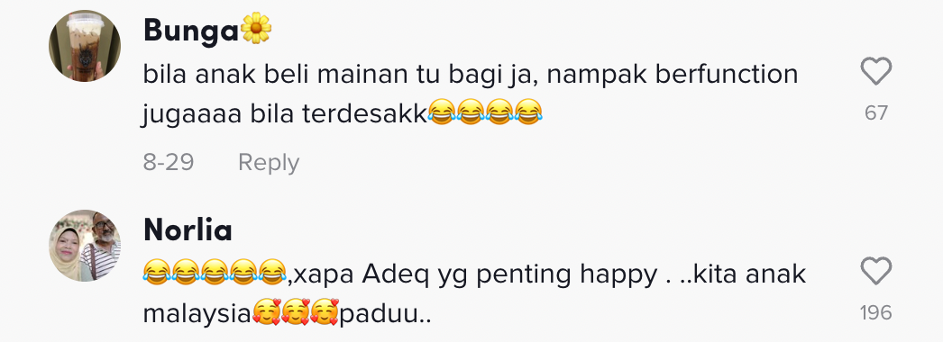 Dalam pada itu, tinjauan di ruangan komen mendapati rata-rata netizen turut merasa terhibur dan memberitahu berguna juga mainan budak itu.