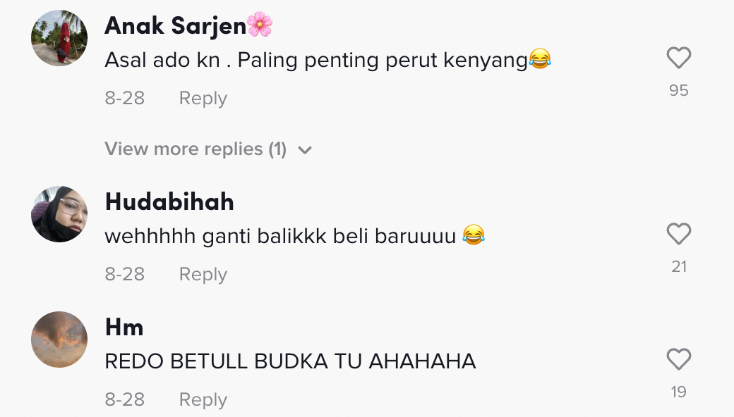 "Asal ado kan. Paling penting perut kenyang" – Netizen