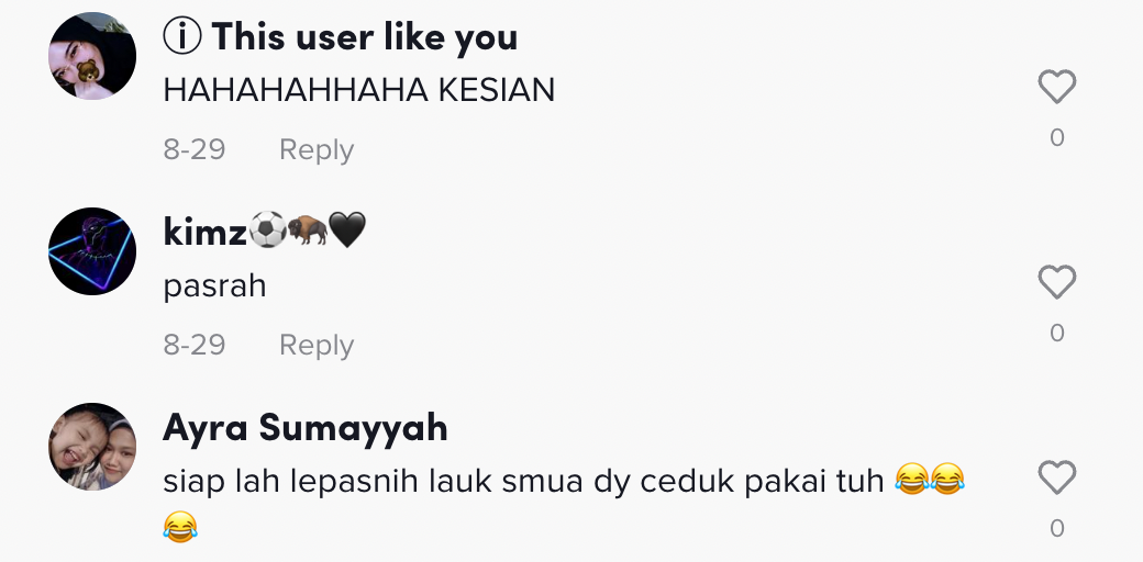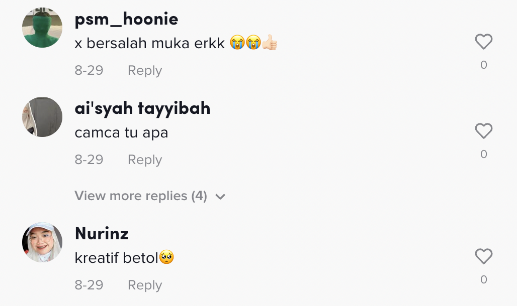 Berikut di bawah adalah antara komen daripada netizen di TikTok: